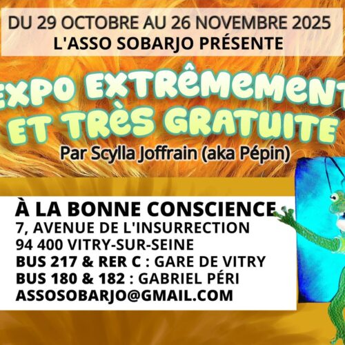 ” Un expo extrêmement fun et très gratuite ” c’est ce que promettent Scylla Joffrin (aka Pépin) et l’Asso Sobarjo. L’artiste exposera ses oeuvres du 29 octobre au 26 novembre…